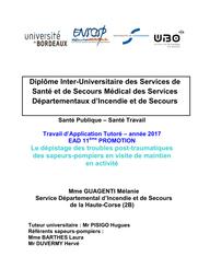 " Les confrontations à la violence, à la souffrance et à la mort s'inscrivent dans la réalité professionnelle des sapeurs-pompiers. Ces expositions régulières et prolongées peuvent générer des séquelles post-traumatiques. Préserver l'équilibre psychique des pompiers relève en amont d'une élaboration préventive relative au dépistage du stress post-traumatique. Assurer les Visites de Maintien en Activité (VMA) constitue la mission principale des infirmiers et des médecins du Service de Santé et de Secours Médical (SSSM). Alors qu'il n'est défini aucun cadre réglementaire, comment optimiser et standardiser la détection des symptômes psychotraumatiques lors des visites de maintien en activité au SDIS de la Haute-Corse ?