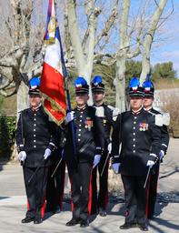 Les drapeaux institutionnels comme celui de l’Ecole nationale supérieure des officiers de sapeurs-pompiers, sont gardés par six personnes.