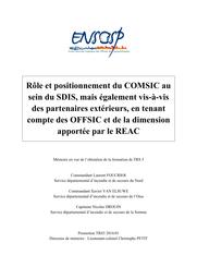 " Les Systèmes d'Information et de Communication s'imposent comme une composante essentielle de l'acte opérationnel. À ce titre, la fonction de Commandant des Systèmes d'Informations et de Communications (COMSIC) est la clé de voute de cette spécialité. La parution prochaine de textes relatifs à la formation nécessite de réaliser un état des lieux de cette fonction créée il y a maintenant 7 ans.