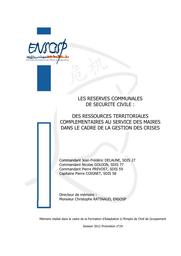 Les réserves communales de sécurité civile : des ressources territoriales complémentaires au service des maires dans le cadre de la gestion des crises