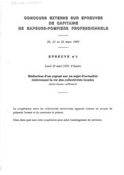 - Rédaction d'un exposé sur un sujet d'actualité intéressant la vie des collectivités locales - Connaissances techniques - Règlement de sécurité et technique de la prévention contre l'incendie .