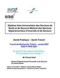 " Le sport dans la profession de sapeur-pompier est un élément central. D’abord, l’entrée dans la profession se fait par le biais de tests sportif qui sont éliminatoires en cas d’échec. Par la suite, les indicateurs de condition physique (ICP) suivent l’agent tout au long de sa carrière. La promotion du sport dans les SDIS a pour objectif principal de garantir une condition...