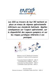 Les SIS au travers de leur RO mettent en place un niveau de réponse opérationnelle inférieure aux standards habituels. Quelles conséquences sur l'aspect opérationnel, sur la disponibilité des sapeurs-pompiers et sur les risques juridiques inhérents à ces pratiques