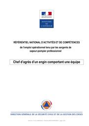 Référentiel national d'activités et de compétences de l'emploi opérationnel tenu par les sergents de sapeur-pompier professionnel : chef d'agrès d'un engin comportant une équipe