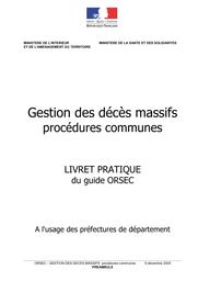 Gestion des décès massifs, procédures communes - livret pratique du guide ORSEC à l'usage des préfectures de département