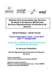 " Dans le cadre de mon travail d'application tutoré, j'ai porté mon étude sur la morphologie du pied du sapeur-pompier. Souvent, les sapeurs-pompiers nous rapportent des douleurs dans les bottes à lacets ou un inconfort lors du port de celles-ci. Je me suis interrogé sur cette problématique. Quelles étaient les origines possibles de ces algies ? Apportions-nous l'égard...