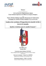Les services d'inspections sont par essence un des éléments permettant de construire une évaluation de la performance des administrations publiques. Ces institutions se doivent d'appréhender et de propager les bonnes pratiques. Cela passe par l'analyse comparative des services similaires ou comparables dans différents pays. Nous avons étudié, dans ce mémoire, les systèmes : anglais, québécois, californien, belge, luxembourgeois, italien, chinois et allemand, afin de proposer des sources d'améliorations pour notre pays. "