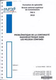 Problématique de la continuïté radioélectrique dans les milieux confinés