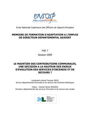 "Partant du constat que malgré le mouvement de balancier législatif opéré entre 1996 et 2004, les contributions des communes et EPCI (établissement public de coopération intercommunale) au budget du SDIS ont été pérennisées par la loi de finances rectificative de 2008 (art. 116), il convient d'envisager les évolutions possibles du système de financement dans un contexte...