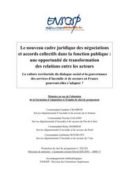 Le nouveau cadre juridique des négociations et accords collectifs dans la fonction publique : une opportunité de transformation des relations entre les acteurs : La culture territoriale du dialogue social et la gouvernance des services d’incendie et de secours en France pourront-elles s’adapter ?
