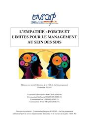 Des échanges riches en informations et en connaissances de terrain, avec des professionnels de grandes écoles militaires, ou avec des cadres sapeurs-pompiers, sont présents dans ce mémoire et apportent des données précises sur le rôle important que joue l’empathie dans le management. Une enquête menée auprès de quatre services départementaux d’incendie et de secours, ainsi qu’auprès de service « QVS » de SDIS, complète ces éléments. Certaines forces et limites de l’empathie dans le management ont ainsi pu être mises en évidence.