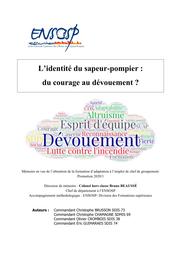 Les services d'incendie et de secours possèdent la particularité de regrouper une multitude de statuts et de métiers possédant à priori leurs propres cultures et identités. Certes les différences peuvent être nombreuses mais le parti pris qui est le nôtre est qu'ils sont animés par un désir commun qui, au-delà des singularités et des spécificités, les réunit sur le théâtre des opérations comme en caserne. C'est cet aspect qui est traité dans ce mémoire. "